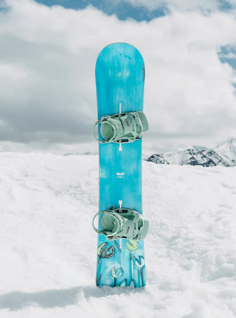 Free to be. Free to create. Left to their own devices, team riders got creative and designed the Burton Blossom Snowboard. It sets you up with a solid true twin platform to spin, stomp, and ride as you like.