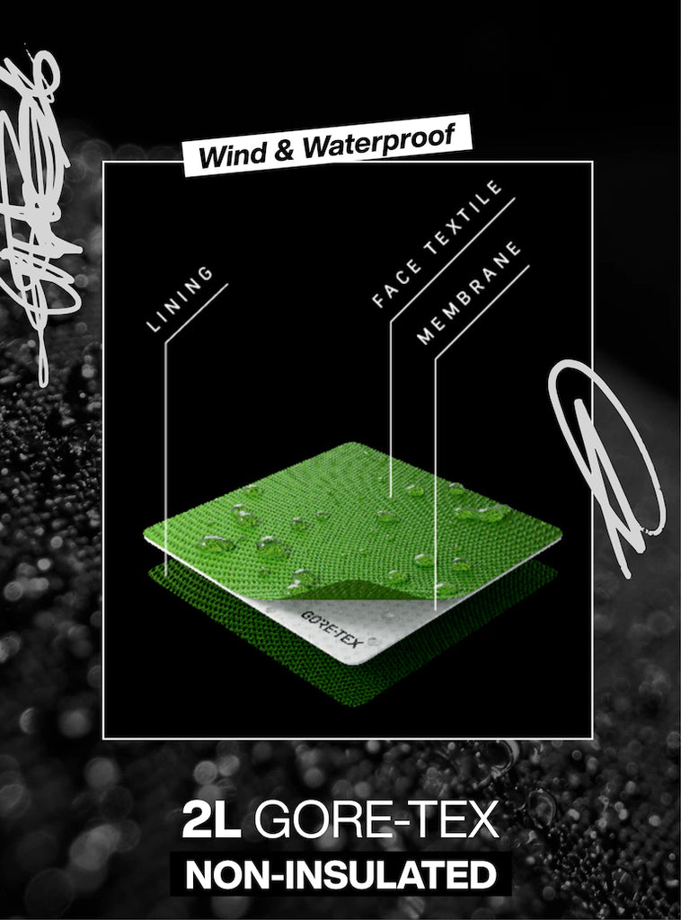 GUARANTEED TO KEEP YOU DRY™ GORE-TEX 2L is waterproof, windproof, breathable, and durable to keep you on the move in all weather, period.