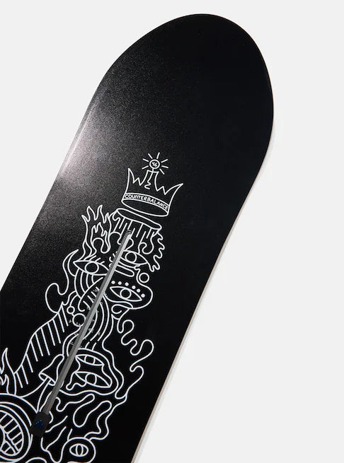 ABOUT THE GRAPHIC: Counterbalance: A weight that balances another weight, and the name of this new quiver killer deck. Burton employees and artists Dylan West and Sophie Sellstrom share their personal takes on the board's versatile personality with complementary graphics for the top sheet and base that act as a counterbalance of their own.